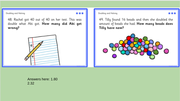 I really enjoyed doing this it was pretty fun and easy what you had to do is that you have to add on the front number until you reach the answer.